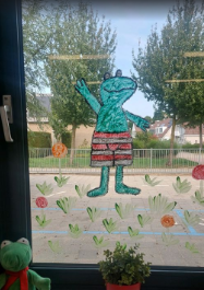 Dit jaar is het klassenthema ‘Kikker‘ en dat zie je ook aan onze klas. Naast de mooie raamschilderingen hebben wij ook boeken over Kikker in de klas, een zelfgemaakte verjaardagskalender en stoelplaatjes met het Kikker er op.