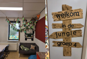 Wij hebben een gezellige, enthousiaste en leergierige klas met 29 leerlingen. Elke dag genieten wij samen volop van alle lessen en activiteiten. Wij leren van en met elkaar en dat doen wij met veel plezier. Ons klassenthema is ‘wilde dieren in de jungle’. Heeft u onze jungle boom en wilde dieren al gezien? We zitten aan de zijkant van het schoolgebouw.